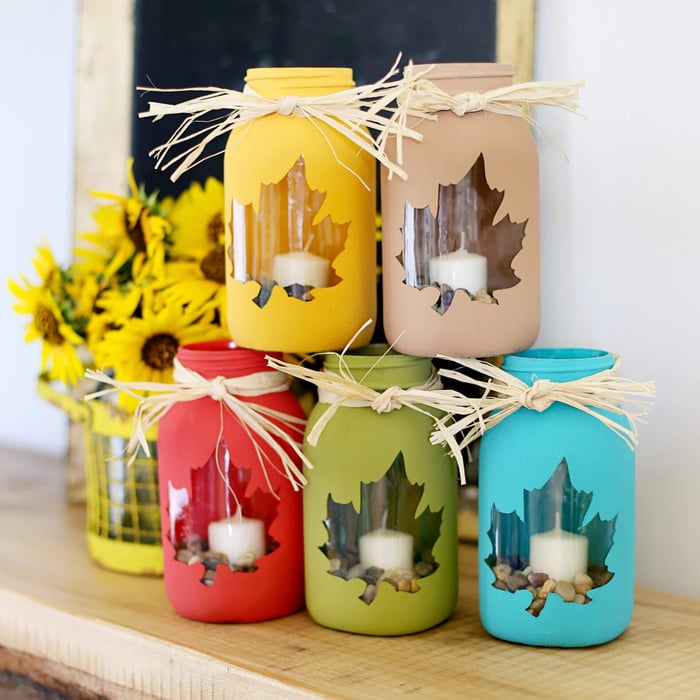 Turn glass jars into beautiful candle holders for a cozy ambiance. Simply fill the jar with decorative elements like sand, pebbles, or dried flowers, and place a tea light or pillar candle inside. You can also paint the jars with frosted glass paint or wrap them with twine for a rustic look.